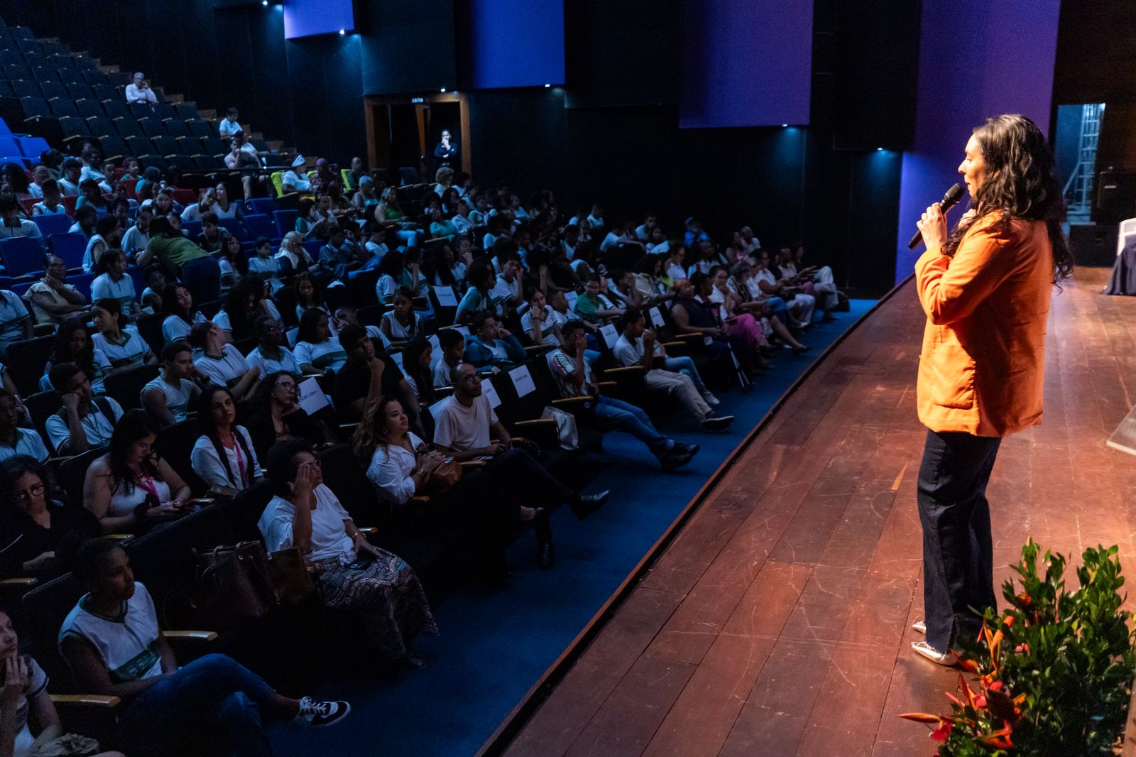 O evento contou com a presença representativa de estudantes do Centro Educacional Marquês de Abrantes e da Escola Municipal Denise Tavares, além de educadores e gestores escolares.