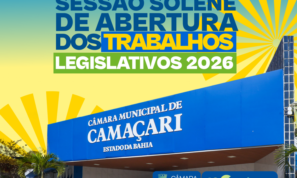 A Câmara de Camaçari realiza, na terça-feira (24/02), a partir das 9h, a Sessão de Abertura dos trabalhos legislativos de 2026, marcando o início de mais um período de debates, votações e apresentação de projetos voltados ao desenvolvimento do município. A sessão reunirá vereadores, autoridades locais e representantes da sociedade civil no plenário da Casa Legislativa e prevê a participação do prefeito para a leitura da Mensagem do Executivo.