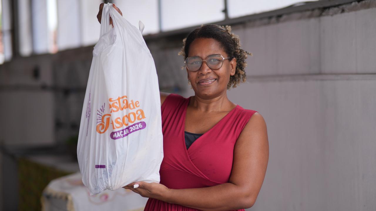 O encanador Edizio dos Santos, 52 anos, foi uma das pessoas contempladas pela Cesta de Páscoa 2026 e que aprovaram a inovação do cupom digital. “Achei fácil gerar o cupom e o atendimento para pegar a cesta foi tranquilo. Foi uma iniciativa importante para evitar fraudes”, avaliou o morador de Jauá.